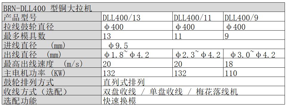 产品是吸收消化国际先进水平的高速铝拉线机技术而设计,该机由放线装置、拉线主机、储线装置、气动单盘收线装置、润滑和冷却装置等部份组成。适用于电线电缆行业将φ9.5mm铝杆拉制成需求规格铝线, 本机采用全新技术、高精度的磨齿齿轮和NSK轴承,大大提高机器运行精度和使用寿命,单列式鼓轮布置、浸油式拉线润滑装置,保证线材的质量.